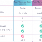 Les cartes de visites sont des formats minimalistes, pouvant réunir les informations de contact nécessaires à vos clients vous concernant et concernant votre entreprise.