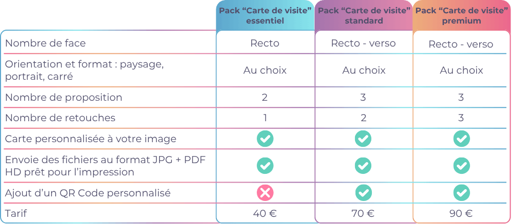 Les cartes de visites sont des formats minimalistes, pouvant réunir les informations de contact nécessaires à vos clients vous concernant et concernant votre entreprise.