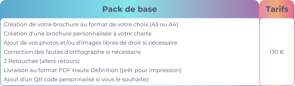 Les brochures et catalogues ont plusieurs utilités. Il est possible de créer un menu de restaurant, un book pour les coiffeur, tatoueur ou esthéticien(ne). Il est également possible de confectionner un portfolio ou une présentation.