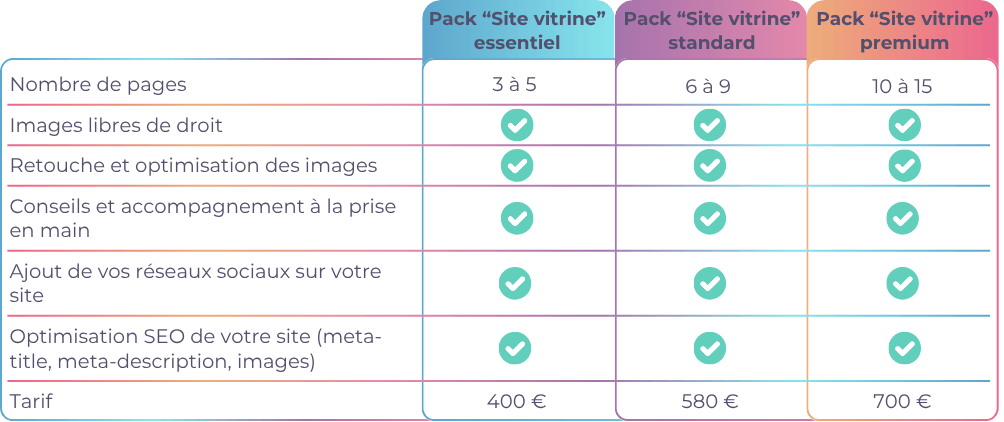 Packs "Site vitrine" & options supplémentaires