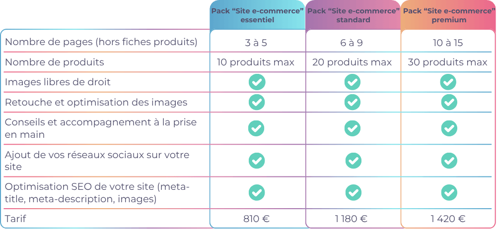 Packs "Site e-commerce" & options supplémentaires